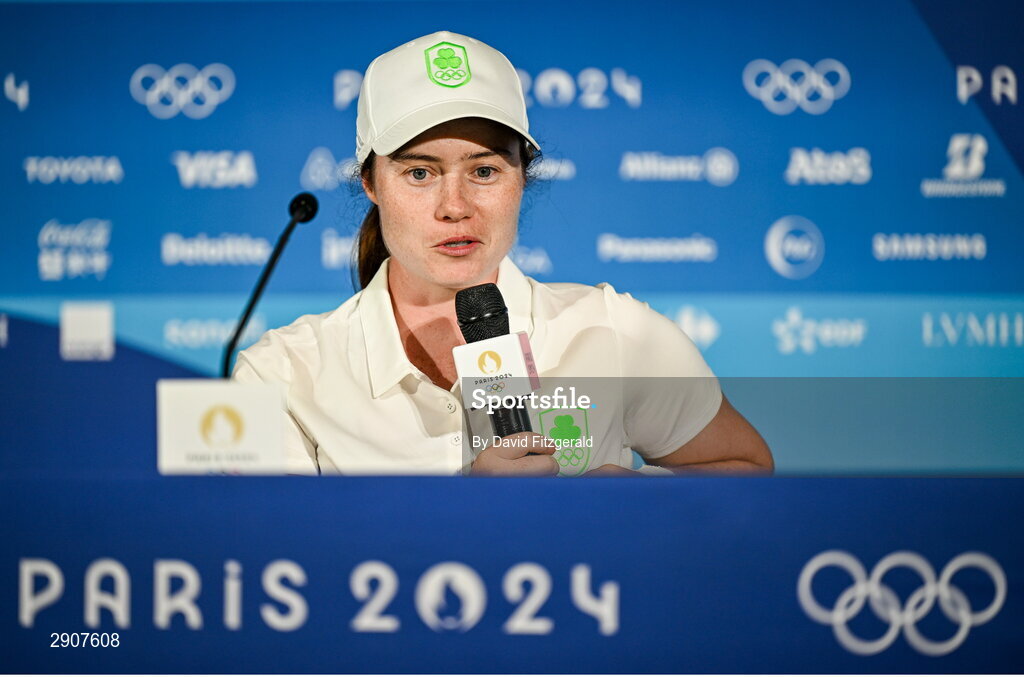 6 August 2024; Leona Maguire of Team Ireland during a press conference following a practice round at Le Golf National during the 2024 Paris Summer Olympic Games in Paris, France. Photo by David Fitzgerald/Sportsfile