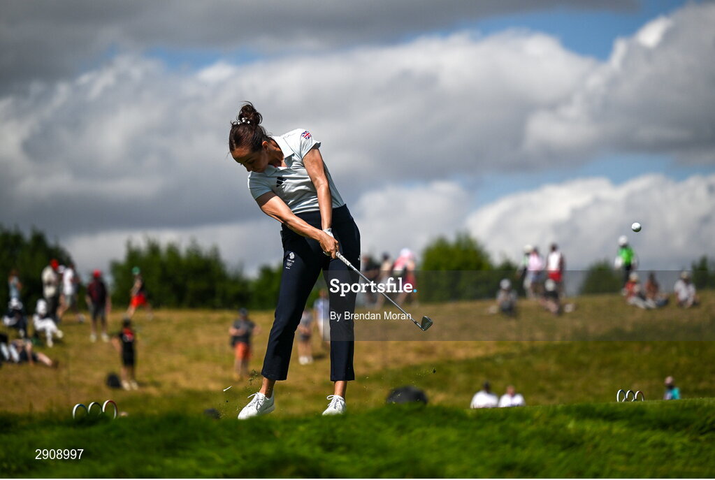 7 August 2024; Georgia Hall of Team Great Britain drives from the second tee box during round one of the women's individual strokeplay at Le Golf National during the 2024 Paris Summer Olympic Games in Paris, France. Photo by Brendan Moran/Sportsfile