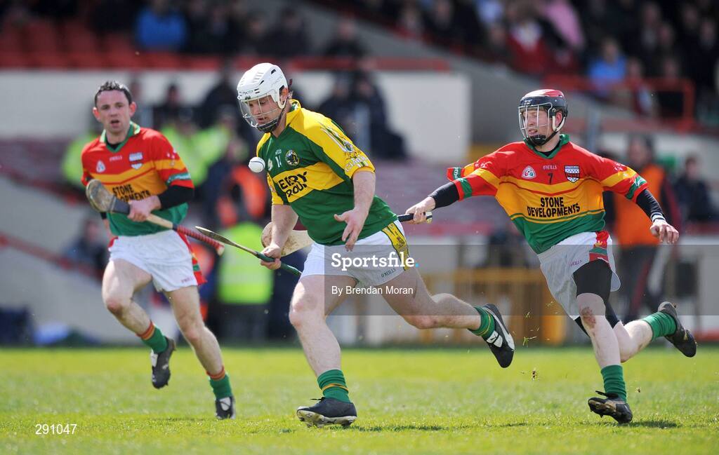 13 April 2008; Gary O'Brien, Kerry, in action against James Hickey, left, and Richard Coady, Carlow. Allianz National Hurling League, Division 2, semi-final, Kerry v Carlow, Gaelic Grounds, Limerick. Picture credit: Brendan Moran / SPORTSFILE