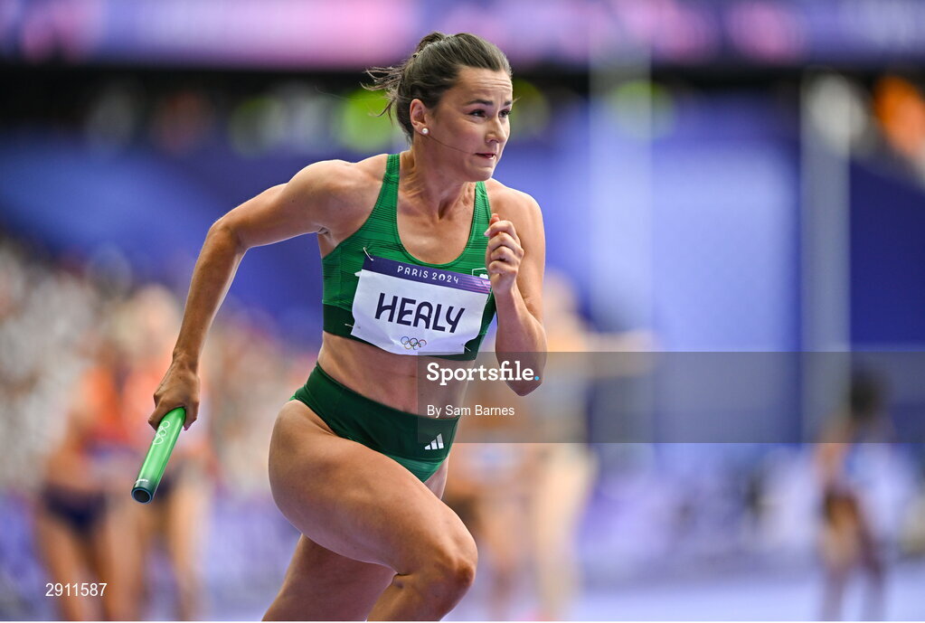 9 August 2024; Phil Healy of Team Ireland in action during the women's 4 x 400m relay round 1 at the Stade de France during the 2024 Paris Summer Olympic Games in Paris, France. Photo by Sam Barnes/Sportsfile