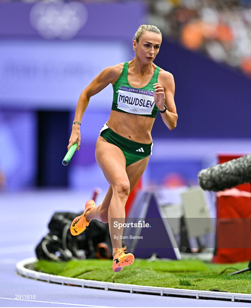 9 August 2024; Sharlene Mawdsley of Team Ireland in action during the women's 4 x 400m relay round 1 at the Stade de France during the 2024 Paris Summer Olympic Games in Paris, France. Photo by Sam Barnes/Sportsfile