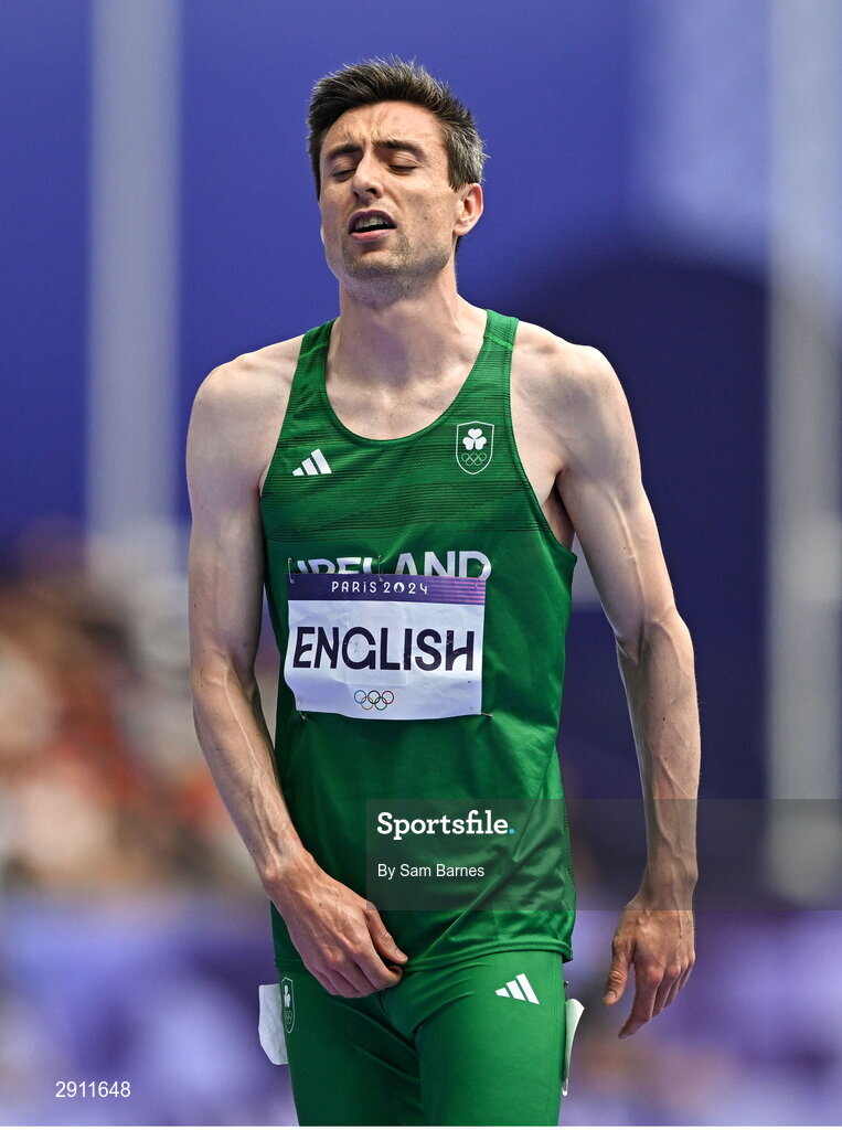 9 August 2024; Mark English of Team Ireland reacts after failing to qualify in the men's 800m semi-final at the Stade de France during the 2024 Paris Summer Olympic Games in Paris, France. Photo by Sam Barnes/Sportsfile