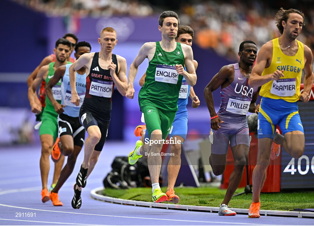 9 August 2024; Mark English of Team Ireland in action during the men's 800m semi-final at the Stade de France during the 2024 Paris Summer Olympic Games in Paris, France. Photo by Sam Barnes/Sportsfile
