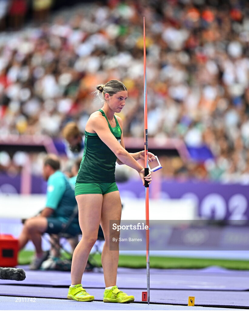9 July 2024; Kate O’Connor of Team Ireland prepares for the women's heptathlon javelin at the Stade de France during the 2024 Paris Summer Olympic Games in Paris, France. Photo by Sam Barnes/Sportsfile