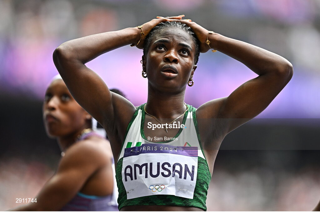 9 August 2024; Tobi Amusan of Team Nigeria after the women's 100m hurdles semi-final at the Stade de France during the 2024 Paris Summer Olympic Games in Paris, France. Photo by Sam Barnes/Sportsfile