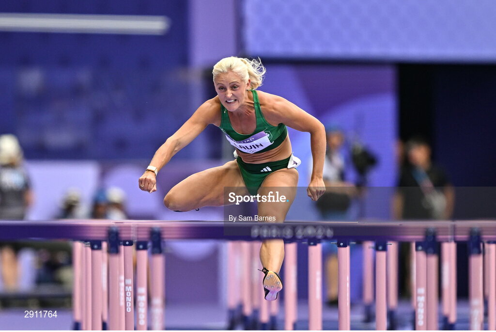 9 August 2024; Sarah Lavin of Team Ireland in action during the women's 100m hurdles semi-final at the Stade de France during the 2024 Paris Summer Olympic Games in Paris, France. Photo by Sam Barnes/Sportsfile