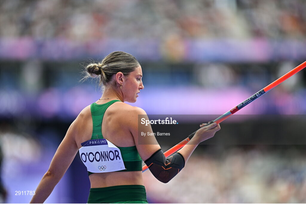 9 August 2024; Kate O’Connor of Team Ireland during the women's heptathlon javelin at the Stade de France during the 2024 Paris Summer Olympic Games in Paris, France. Photo by Sam Barnes/Sportsfile