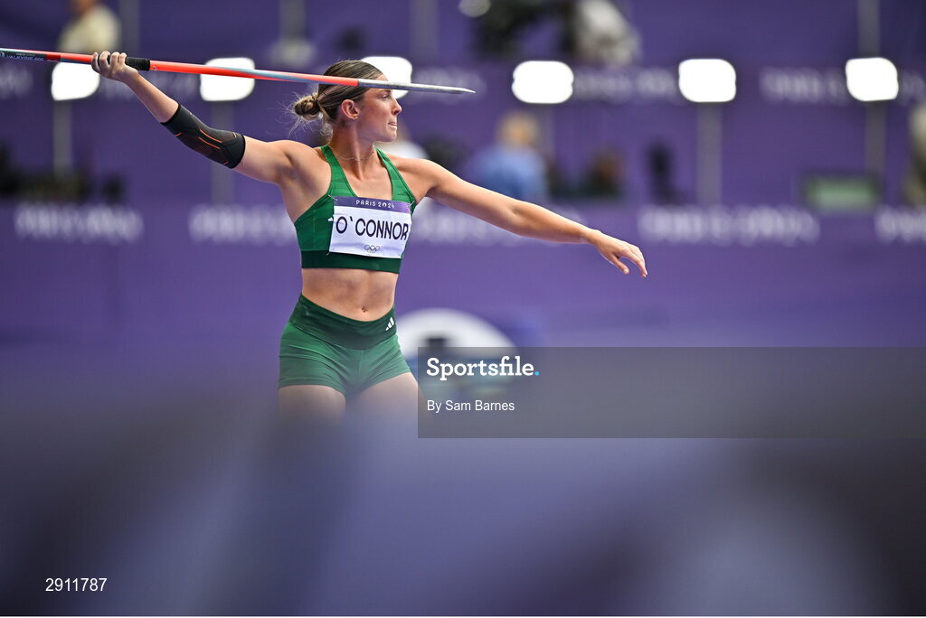 9 August 2024; Kate O’Connor of Team Ireland in action during the women's heptathlon javelin at the Stade de France during the 2024 Paris Summer Olympic Games in Paris, France. Photo by Sam Barnes/Sportsfile