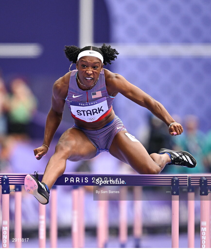 9 August 2024; Grace Stark of Team United States in action during the women's 100m hurdles semi-final at the Stade de France during the 2024 Paris Summer Olympic Games in Paris, France. Photo by Sam Barnes/Sportsfile