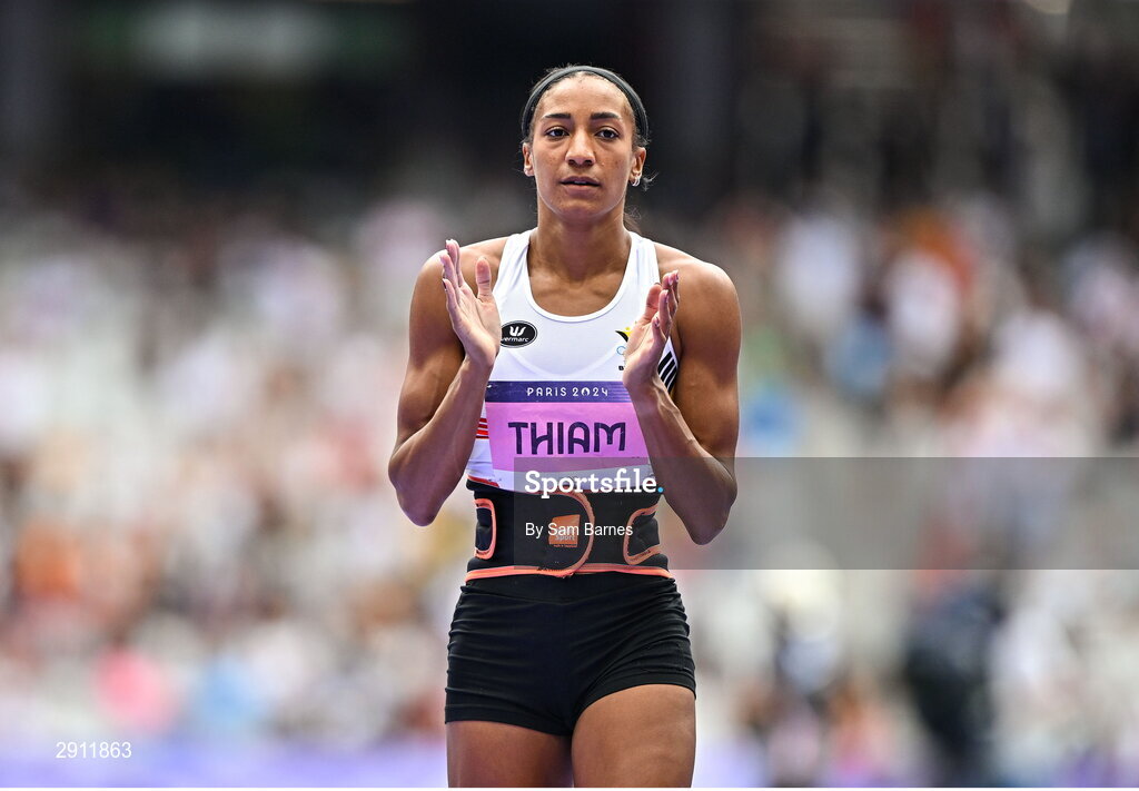9 August 2024; Nafissatou Thiam of Team Belgium in action during the women's heptathlon javelin at the Stade de France during the 2024 Paris Summer Olympic Games in Paris, France. Photo by Sam Barnes/Sportsfile