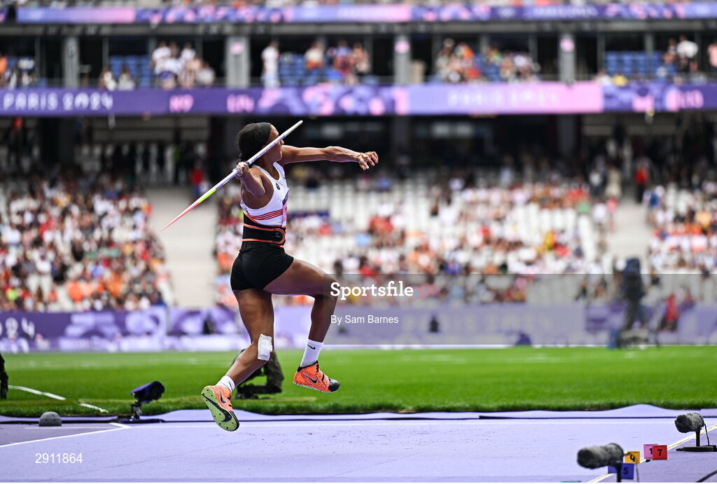 9 August 2024; Nafissatou Thiam of Team Belgium in action during the women's heptathlon javelin at the Stade de France during the 2024 Paris Summer Olympic Games in Paris, France. Photo by Sam Barnes/Sportsfile