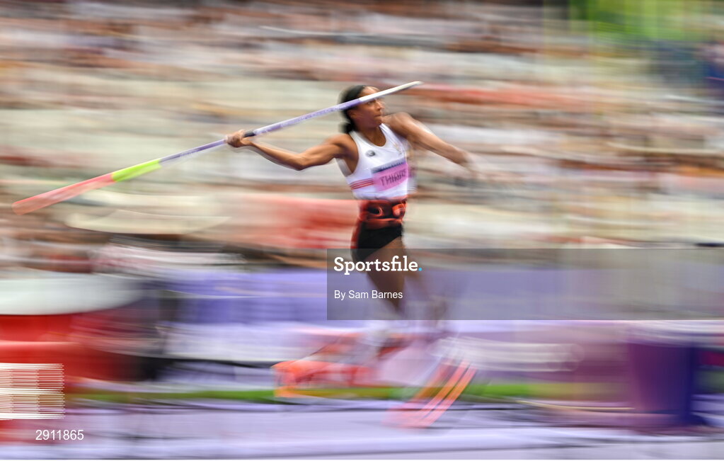 9 August 2024; Nafissatou Thiam of Team Belgium in action during the women's heptathlon javelin at the Stade de France during the 2024 Paris Summer Olympic Games in Paris, France. Photo by Sam Barnes/Sportsfile