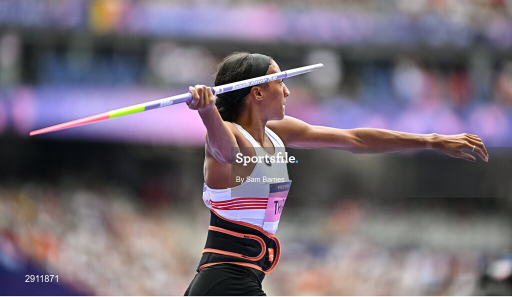 9 August 2024; Nafissatou Thiam of Team Belgium in action during the women's heptathlon javelin at the Stade de France during the 2024 Paris Summer Olympic Games in Paris, France. Photo by Sam Barnes/Sportsfile