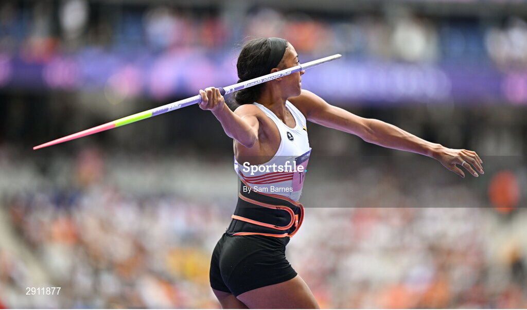 9 August 2024; Nafissatou Thiam of Team Belgium in action during the women's heptathlon javelin at the Stade de France during the 2024 Paris Summer Olympic Games in Paris, France. Photo by Sam Barnes/Sportsfile