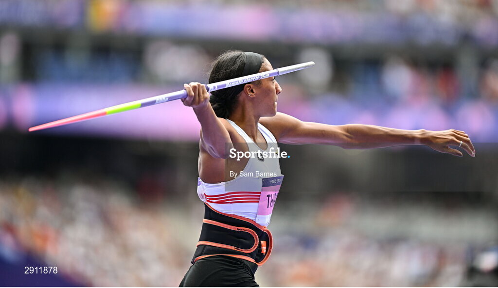 9 August 2024; Nafissatou Thiam of Team Belgium in action during the women's heptathlon javelin at the Stade de France during the 2024 Paris Summer Olympic Games in Paris, France. Photo by Sam Barnes/Sportsfile