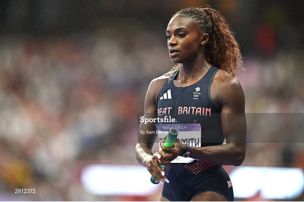 9 August 2024; Dina Asher-Smith of Team Great Britain before the women's 4x100m relay at the Stade de France during the 2024 Paris Summer Olympic Games in Paris, France. Photo by Sam Barnes/Sportsfile