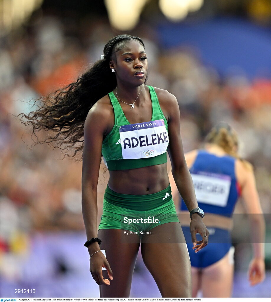 9 August 2024; Rhasidat Adeleke of Team Ireland before the women's 400m final at the Stade de France during the 2024 Paris Summer Olympic Games in Paris, France. Photo by Sam Barnes/Sportsfile