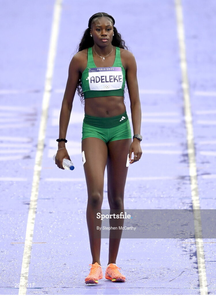 9 August 2024; Rhasidat Adeleke of Team Ireland before the women's 400m final at the Stade de France during the 2024 Paris Summer Olympic Games in Paris, France. Photo by Stephen McCarthy/Sportsfile