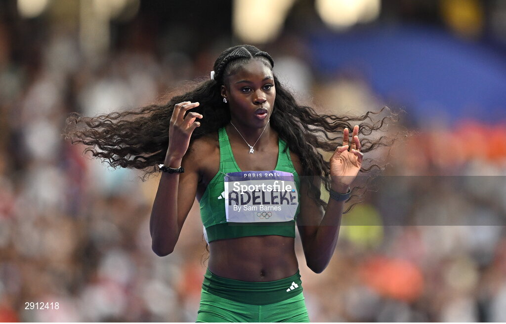 9 August 2024; Rhasidat Adeleke of Team Ireland before the women's 400m final at the Stade de France during the 2024 Paris Summer Olympic Games in Paris, France. Photo by Sam Barnes/Sportsfile