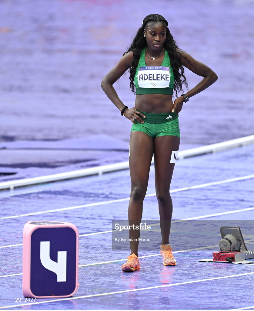 9 August 2024; Rhasidat Adeleke of Team Ireland before the women's 400m final at the Stade de France during the 2024 Paris Summer Olympic Games in Paris, France. Photo by Brendan Moran/Sportsfile
