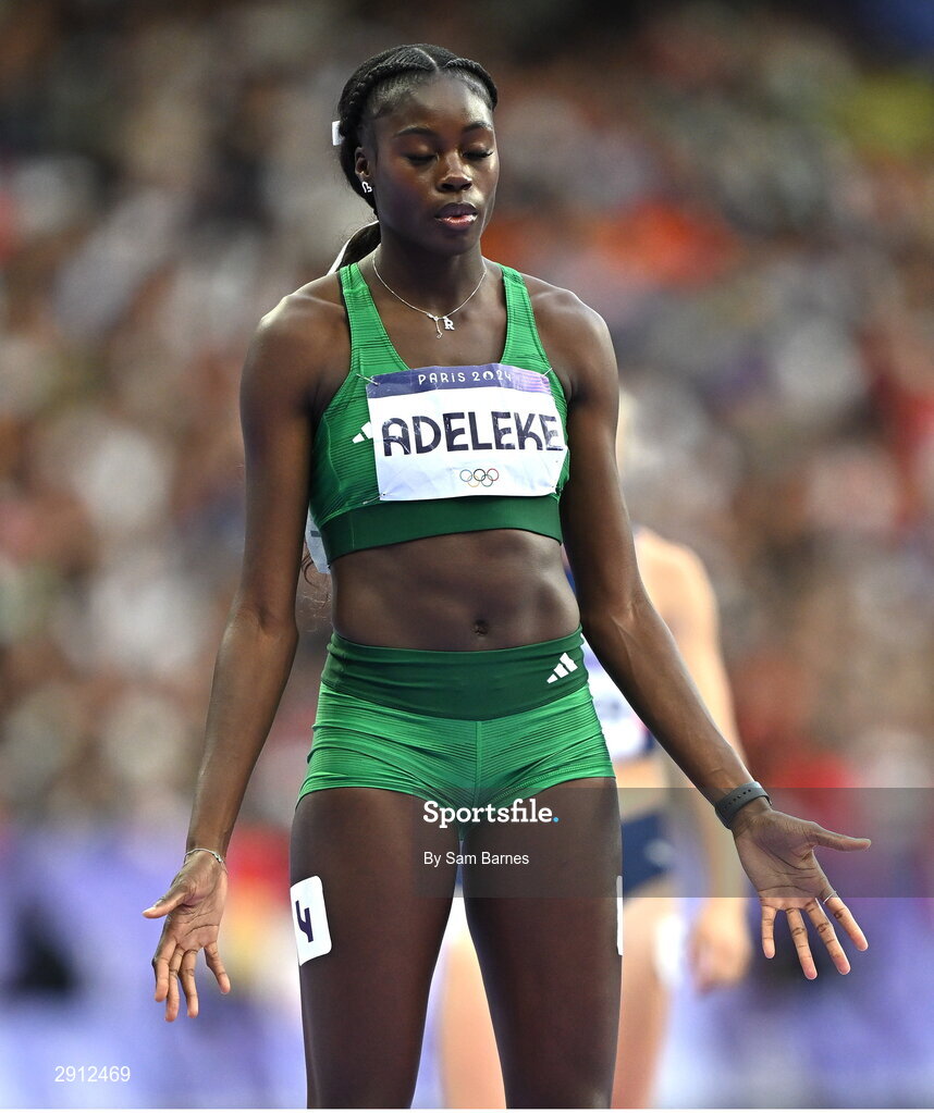 9 August 2024; Rhasidat Adeleke of Team Ireland before the women's 400m final at the Stade de France during the 2024 Paris Summer Olympic Games in Paris, France. Photo by Sam Barnes/Sportsfile