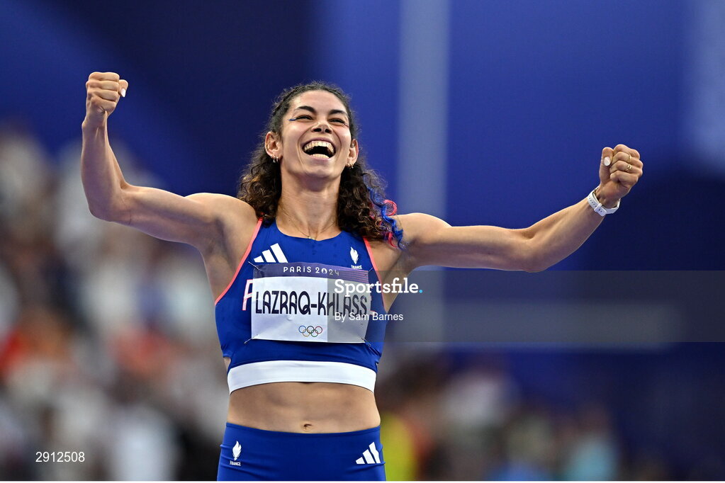 9 August 2024; Auriana Lazraq-Khlass of Team France after the women's heptathlon 800m final at the Stade de France during the 2024 Paris Summer Olympic Games in Paris, France. Photo by Sam Barnes/Sportsfile