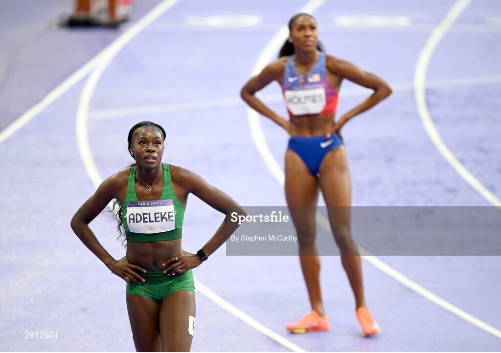 9 August 2024; Rhasidat Adeleke of Team Ireland after the women's 400m final at the Stade de France during the 2024 Paris Summer Olympic Games in Paris, France. Photo by Stephen McCarthy/Sportsfile