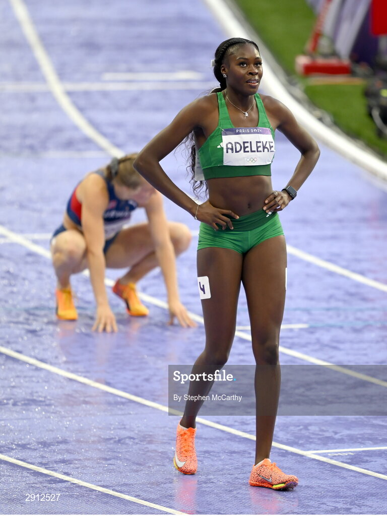 9 August 2024; Rhasidat Adeleke of Team Ireland after the women's 400m final at the Stade de France during the 2024 Paris Summer Olympic Games in Paris, France. Photo by Stephen McCarthy/Sportsfile
