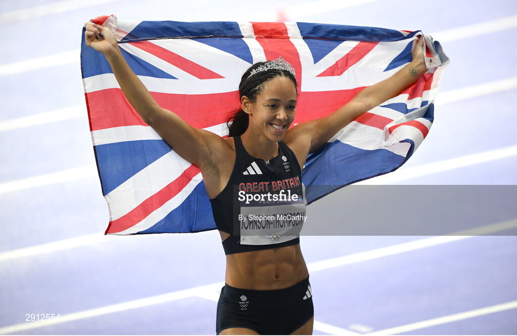 9 August 2024; Katarina Johnson-Thompson of Team Great Britain after competing in the women's heptathlon 800m final at the Stade de France during the 2024 Paris Summer Olympic Games in Paris, France. Photo by Stephen McCarthy/Sportsfile