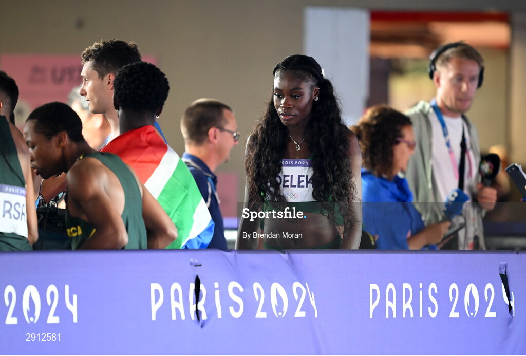 9 August 2024; Rhasidat Adeleke of Team Ireland after the women's 400m final at the Stade de France during the 2024 Paris Summer Olympic Games in Paris, France. Photo by Brendan Moran/Sportsfile