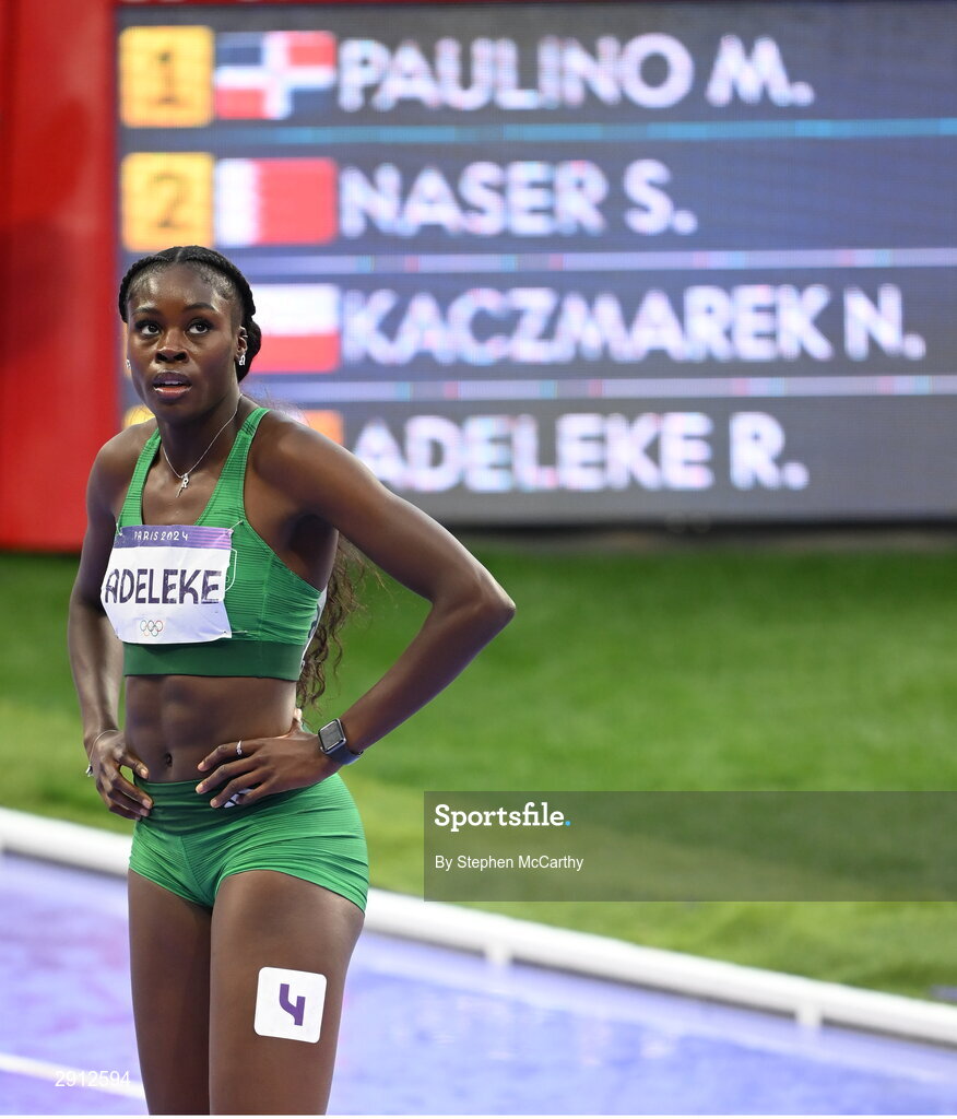 9 August 2024; Rhasidat Adeleke of Team Ireland after the women's 400m final at the Stade de France during the 2024 Paris Summer Olympic Games in Paris, France. Photo by Stephen McCarthy/Sportsfile