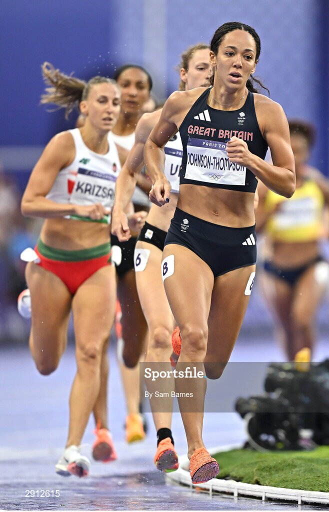9 August 2024; Katarina Johnson-Thompson of Team Great Britain during the women's heptathlon 800m final at the Stade de France during the 2024 Paris Summer Olympic Games in Paris, France. Photo by Sam Barnes/Sportsfile