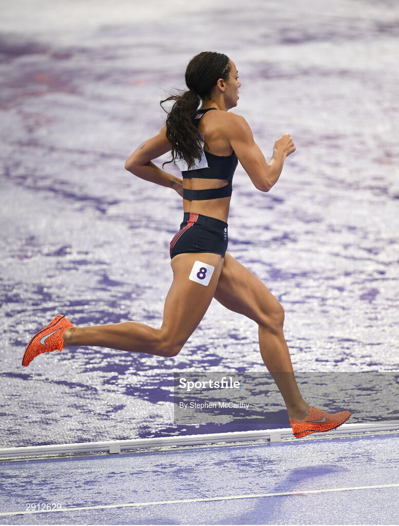 9 August 2024; Katarina Johnson-Thompson of Team Great Britain during the women's heptathlon 800m final at the Stade de France during the 2024 Paris Summer Olympic Games in Paris, France. Photo by Stephen McCarthy/Sportsfile
