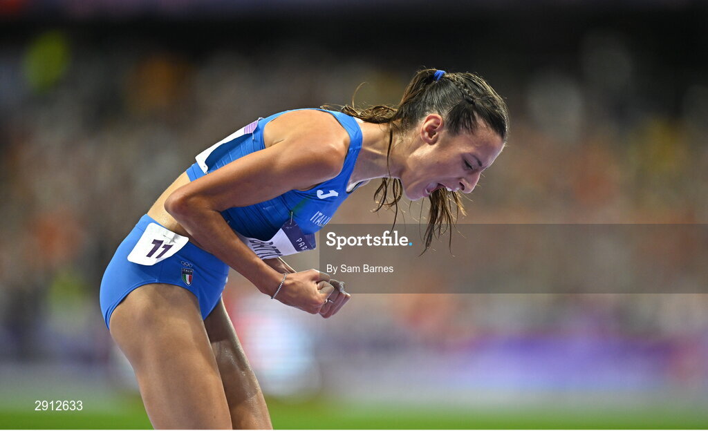 9 August 2024; Nadia Battocletti of Team Italy celebrates after finshing second in the women's 10,000m final at the Stade de France during the 2024 Paris Summer Olympic Games in Paris, France. Photo by Sam Barnes/Sportsfile
