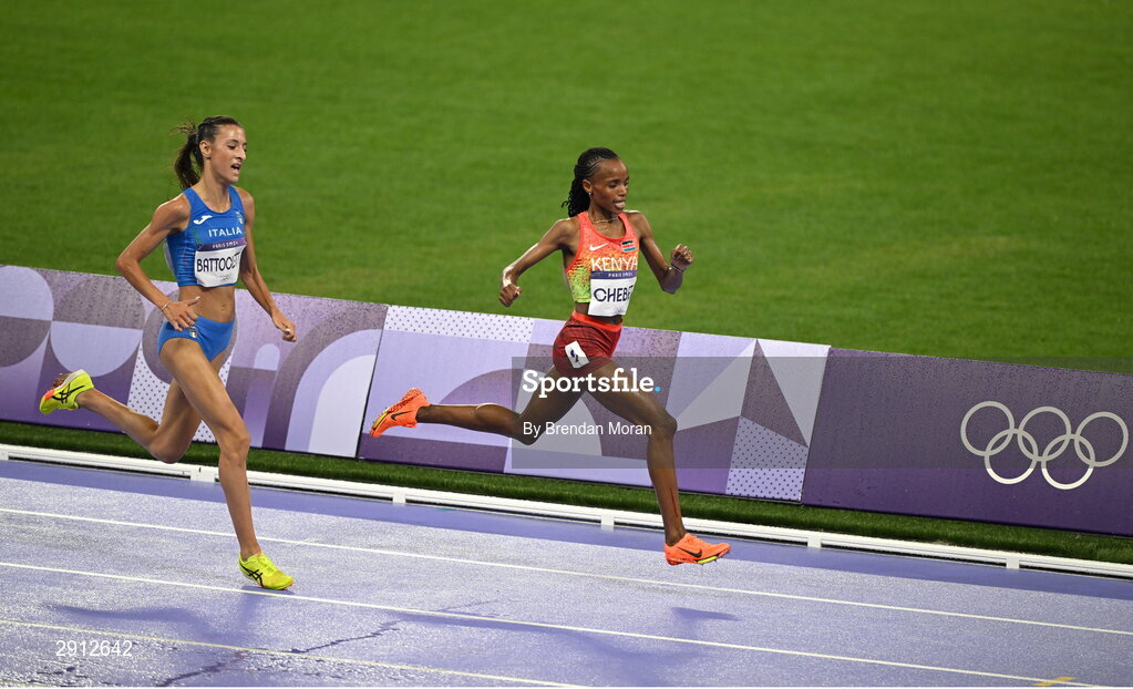 9 August 2024; Beatrice Chebet of Team Kenya on her way to winning the women's 10,000m final at the Stade de France during the 2024 Paris Summer Olympic Games in Paris, France. Photo by Brendan Moran/Sportsfile