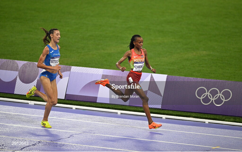 9 August 2024; Beatrice Chebet of Team Kenya on her way to winning the women's 10,000m final at the Stade de France during the 2024 Paris Summer Olympic Games in Paris, France. Photo by Brendan Moran/Sportsfile