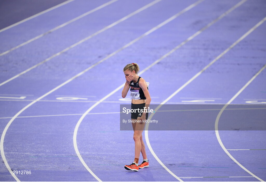 9 August 2024; Megan Keith of Team Great Britain after the women's 10,000m final at the Stade de France during the 2024 Paris Summer Olympic Games in Paris, France. Photo by Stephen McCarthy/Sportsfile