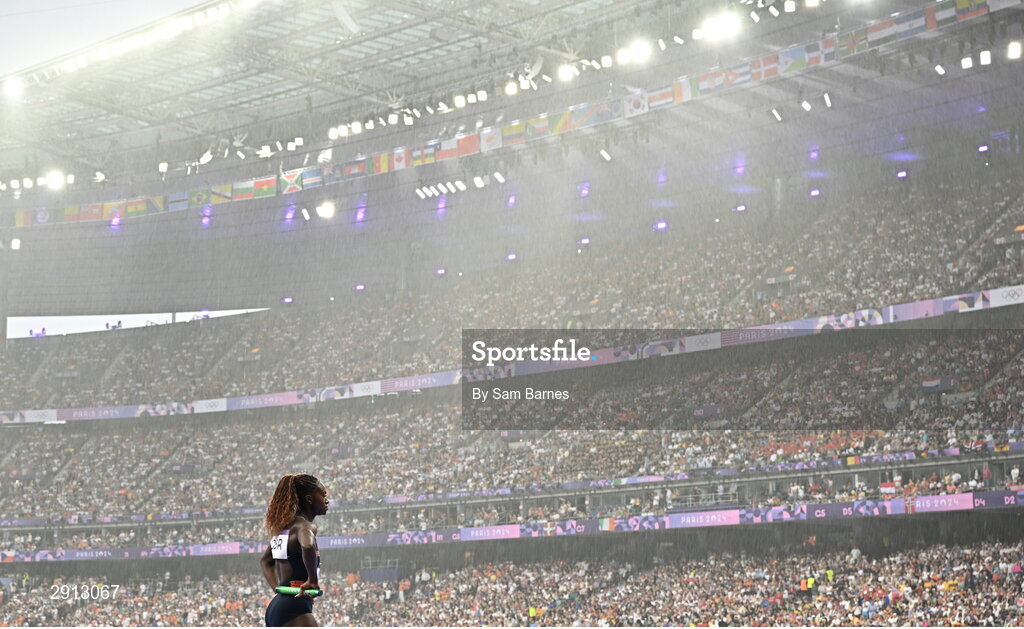 9 August 2024; Dina Asher-Smith of Team Great Britain before the women's 4x100m relay final at the Stade de France during the 2024 Paris Summer Olympic Games in Paris, France. Photo by Sam Barnes/Sportsfile