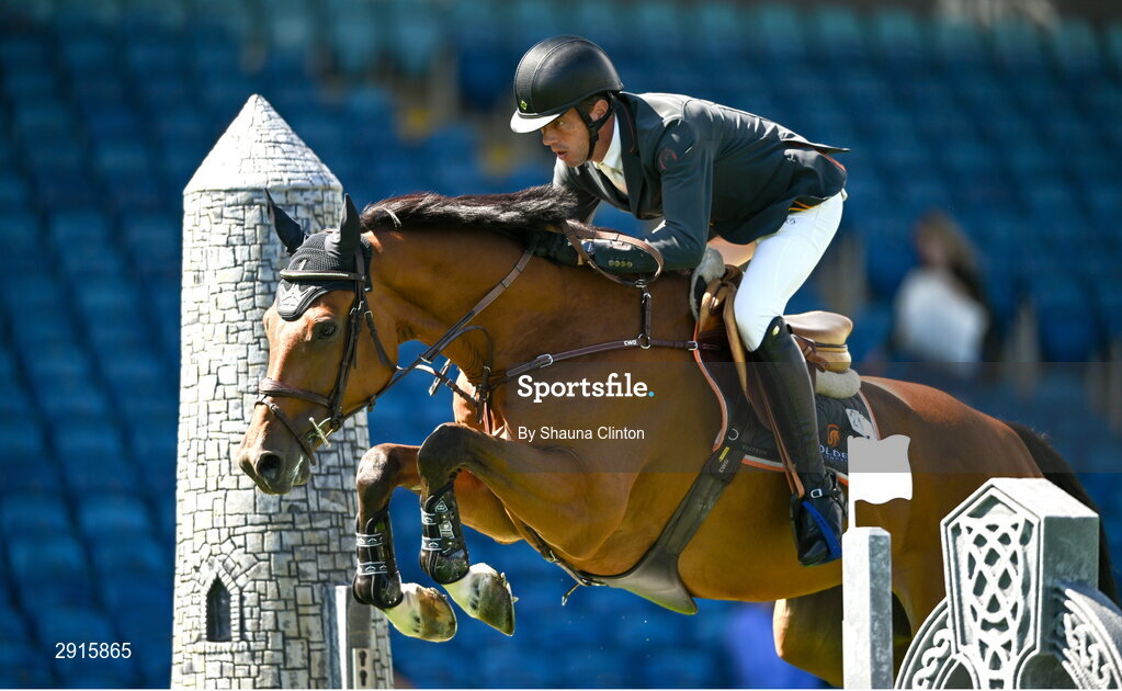 14 August 2024; Harrie Smolders of the Netherlands competing on Kaspar R in the Speed Stakes during the Dublin Horse Show 2024 at the RDS in Dublin. Photo by Shauna Clinton/Sportsfile