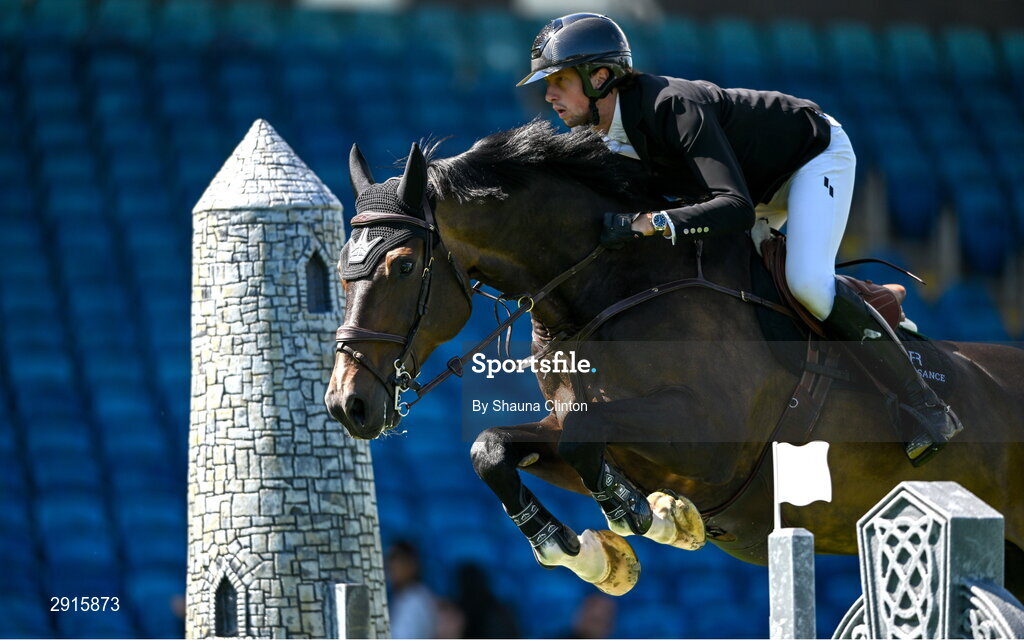 14 August 2024; Martin Fuchs of Switzerland competing on Conner Jei in the Speed Stakes during the Dublin Horse Show 2024 at the RDS in Dublin. Photo by Shauna Clinton/Sportsfile