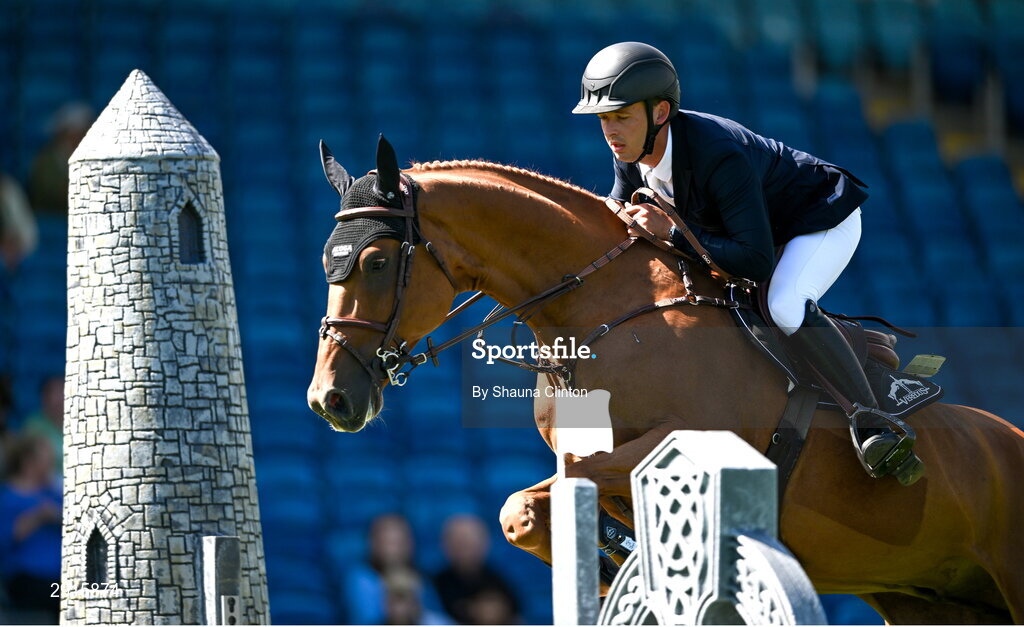 14 August 2024; Bertram Allen of Ireland competing on Gary de Cerisy in the Speed Stakes during the Dublin Horse Show 2024 at the RDS in Dublin. Photo by Shauna Clinton/Sportsfile