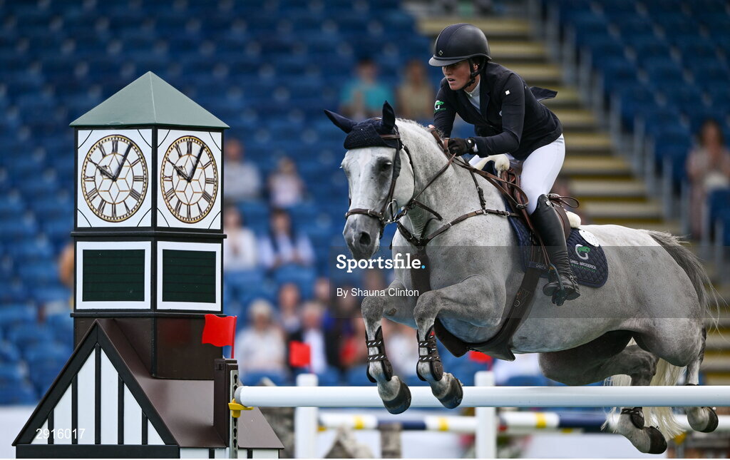 14 August 2024; Niamh McEvoy of Ireland competing on Jasmin Da Hermida in the Sport Ireland Classic during the Dublin Horse Show 2024 at the RDS in Dublin. Photo by Shauna Clinton/Sportsfile
