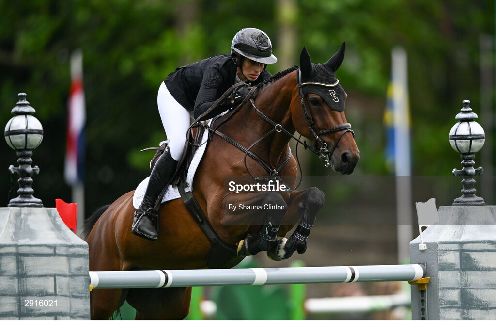 14 August 2024; Janika Sprunger of Switzerland competing on Orelie in the Sport Ireland Classic during the Dublin Horse Show 2024 at the RDS in Dublin. Photo by Shauna Clinton/Sportsfile