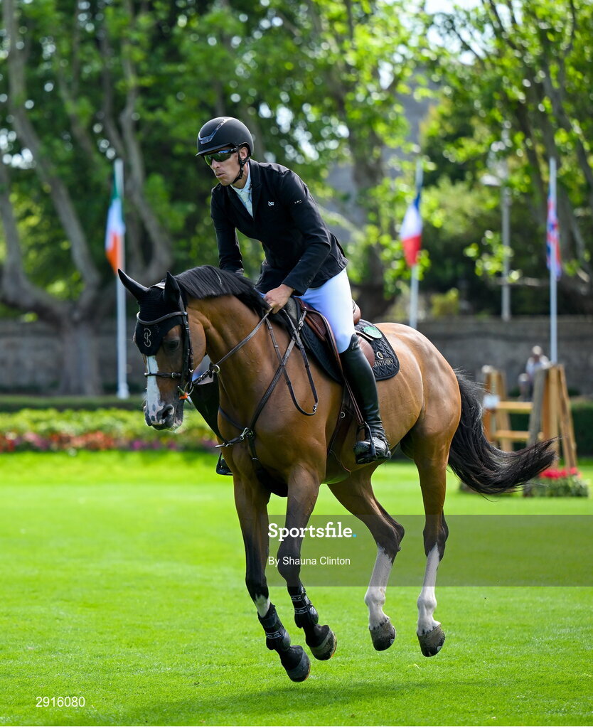 14 August 2024; Henrick Von Eckermann of Sweden competing on Iliana in the Speed Stakes during the Dublin Horse Show 2024 at the RDS in Dublin. Photo by Shauna Clinton/Sportsfile