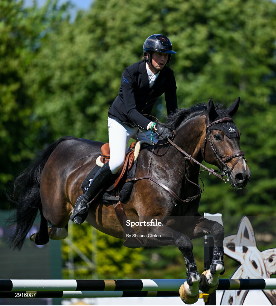 14 August 2024; Martin Fuchs of Switzerland competing on Conner Jei in the Speed Stakes during the Dublin Horse Show 2024 at the RDS in Dublin. Photo by Shauna Clinton/Sportsfile