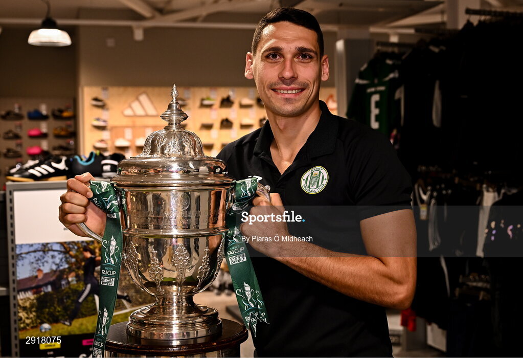18 August 2024; Kerry FC goalkeeper Antonio Tuta at the Sports Direct Men’s FAI Cup Trophy Tour at Sports Direct, Tralee, ahead of the Sports Direct Men’s FAI Cup Third Round clash between Kerry and Bohemians at Mounthawk Park in Tralee, Kerry. Photo by Piaras Ó Mídheach/Sportsfile