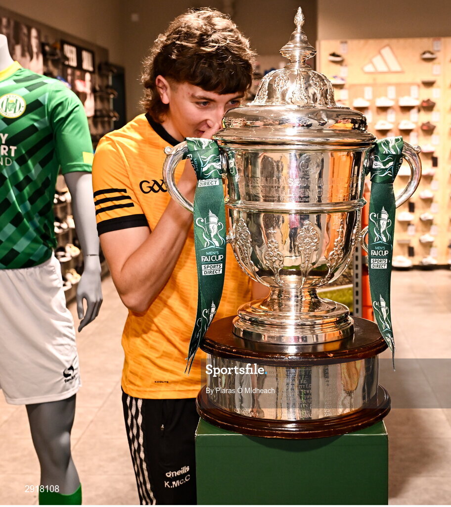 18 August 2024; Kyron McColgan, from Donegal, at the Sports Direct Men’s FAI Cup Trophy Tour at Sports Direct, Tralee, ahead of the Sports Direct Men’s FAI Cup Third Round clash between Kerry and Bohemians at Mounthawk Park in Tralee, Kerry. Photo by Piaras Ó Mídheach/Sportsfile
