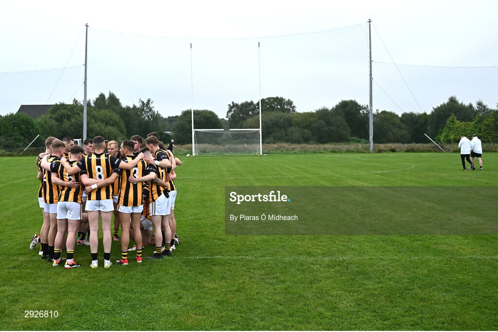 1 September 2024; Crossmaglen Rangers players in a huddle before the Armagh Senior Club Football Championship Group B second round match between High Moss Sarsfields and Crossmaglen Rangers at Fr Dan McGeown Park in Derrytrasna, Armagh. Photo by Piaras Ó Mídheach/Sportsfile