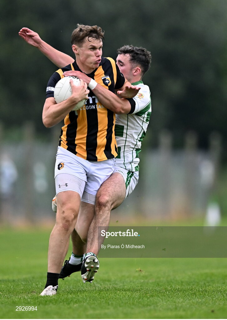 1 September 2024; Oisín O'Neill of Crossmaglen Rangers in action against Sean McAlinden of High Moss Sarsfields during the Armagh Senior Club Football Championship Group B second round match between High Moss Sarsfields and Crossmaglen Rangers at Fr. Dan McGeown Park in Derrytrasna, Armagh. Photo by Piaras Ó Mídheach/Sportsfile