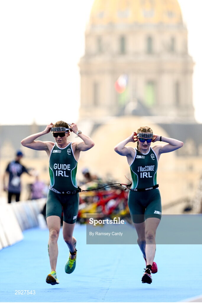 2 September 2024; Judith MacCombe, right, and guide Eimear Nicholls of Ireland in action during the women's PTVI race on day five of the Paris 2024 Paralympic Games at Pont Alexandre III in Paris, France. Photo by Ramsey Cardy/Sportsfile
